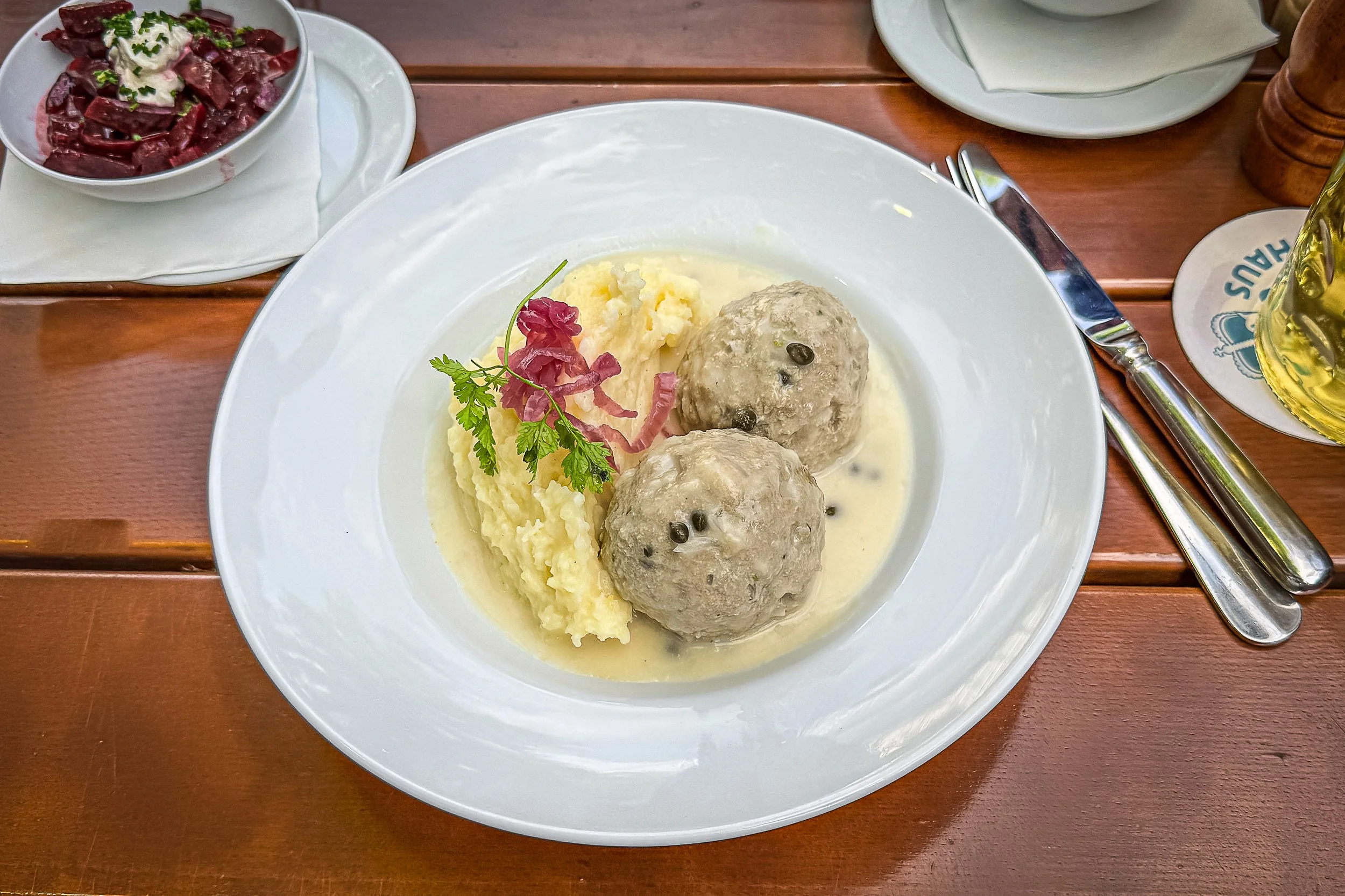 Es gibt Orte in Berlin, die kennt man, war aber ewig nicht mehr da. Die Gaststätte im Prater ist für mich genau so einer. Neulich war Besuch in der Stadt, die Sonne schien, und wir hatten Lust auf etwas Deftiges. Also rein in den Hof und diesmal nicht in den Biergarten, sondern in den Servicebereich mit richtiger Karte und diesem ganz eigenen Berlin-Gefühl zwischen bodenständig und charmant altmodisch. Für meinen Besuch gab es das Schnitzel: goldbraun, knusprig, riesig. Genau, wie man sich das wünscht, wenn man „Schnitzel“ sagt und was Ordentliches erwartet. Ich hatte die Königsberger Klopse, und ich glaube, ich kann inzwischen mit gutem Gewissen sagen: Ich habe die meisten Klopse dieser Stadt probiert. Diese hier? Ganz vorne dabei. Fluffig, leicht, mit einer feinen, ausgewogenen Sauce, die Kapern ohne brachiale Säure mitträgt. Wir saßen draußen, der Service war aufmerksam, freundlich, ganz ohne Hektik, wirklich einfach angenehm. Ein Ort, der Berliner Klassiker ernst nimmt, ohne zu verkopfen. Schön!